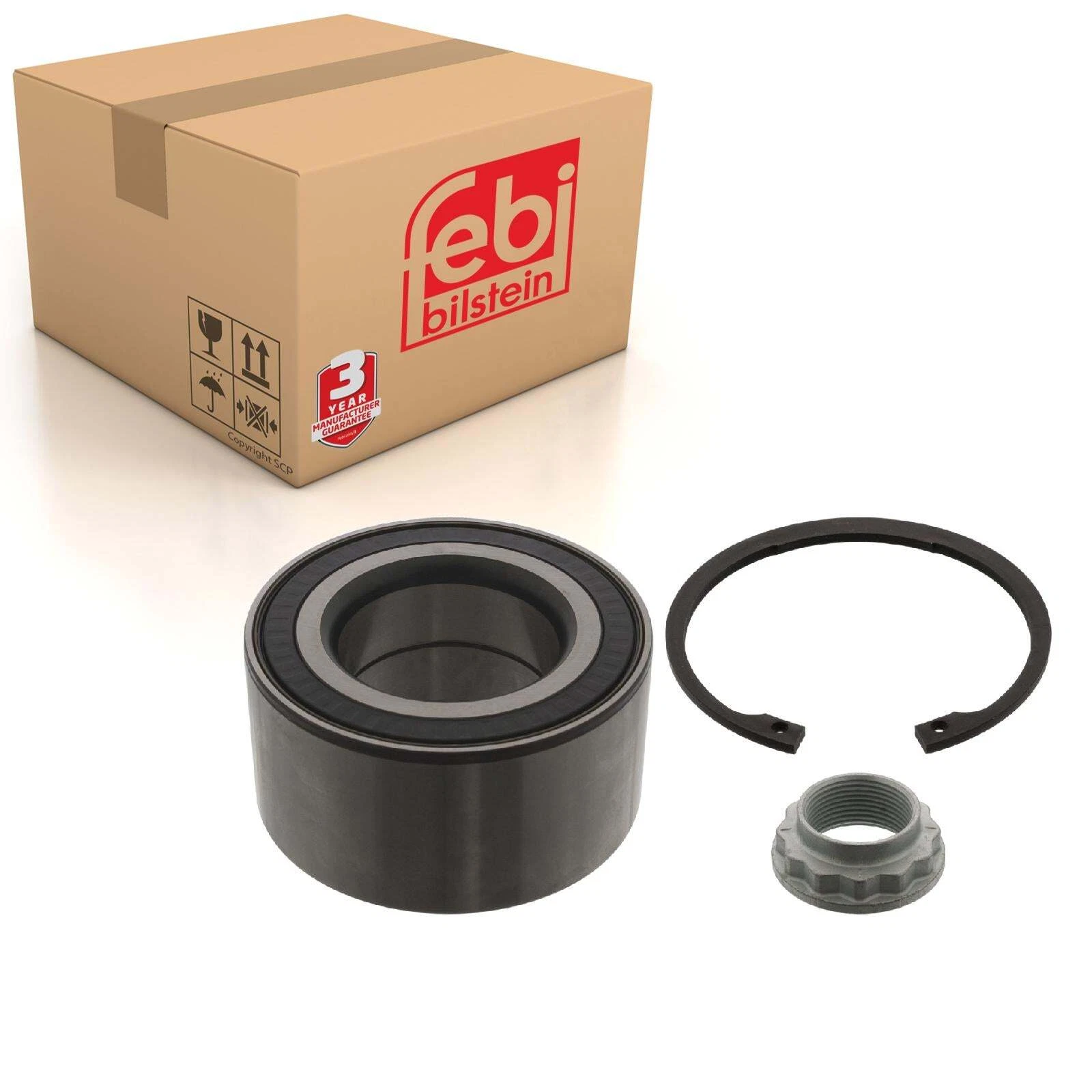 Jogo de rolamento de roda com anel do sensor de impulsos ABS, porca do eixo e anel de retenção